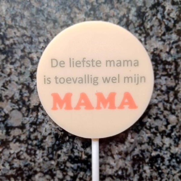 Onze moederdag-lollies, gemaakt van witte chocolade, zijn verkrijgbaar in 5 soorten designs.