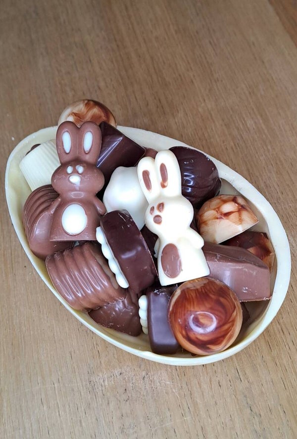 Half paasei gevuld met pralines