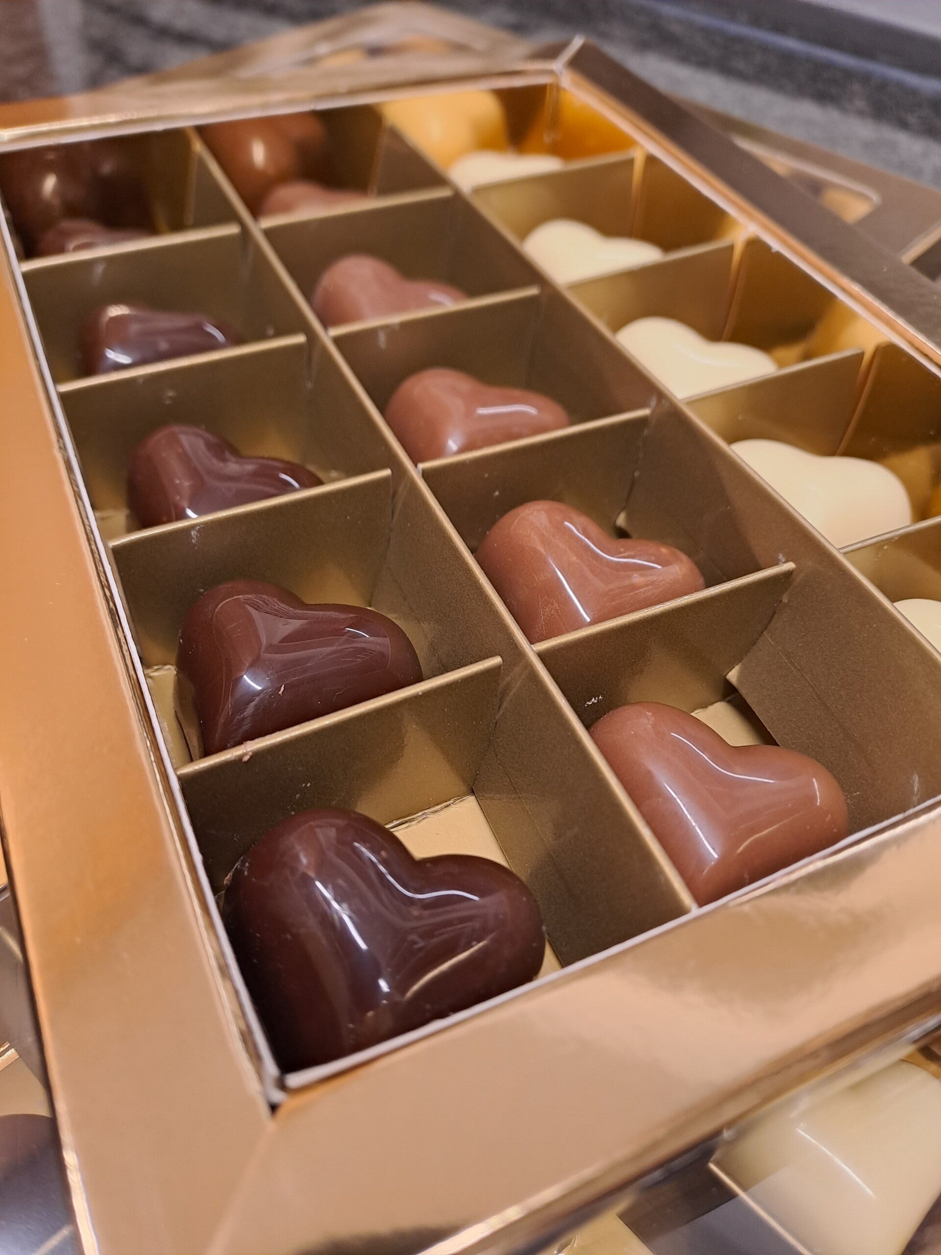 In deze goudkleurige geschenkdoos zitten maar liefst 15 artisanale pralines !